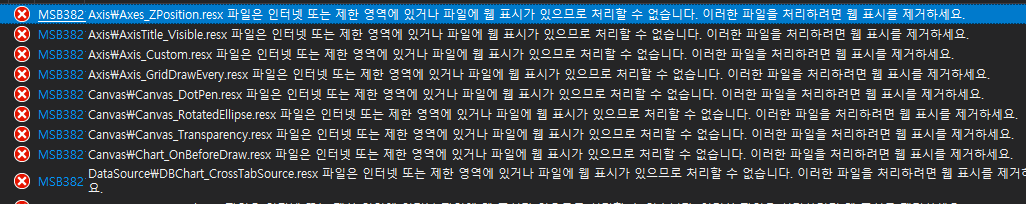 | [C#] "파일은 인터넷 또는 제한 영역에 있거나 파일에 웹 표시가 있으므로 처리할 수 없습니다. 이러한 파일을 처리하려면 웹 표시를 제거하세요." 오류 해결 (0) | 2022.03.19 |